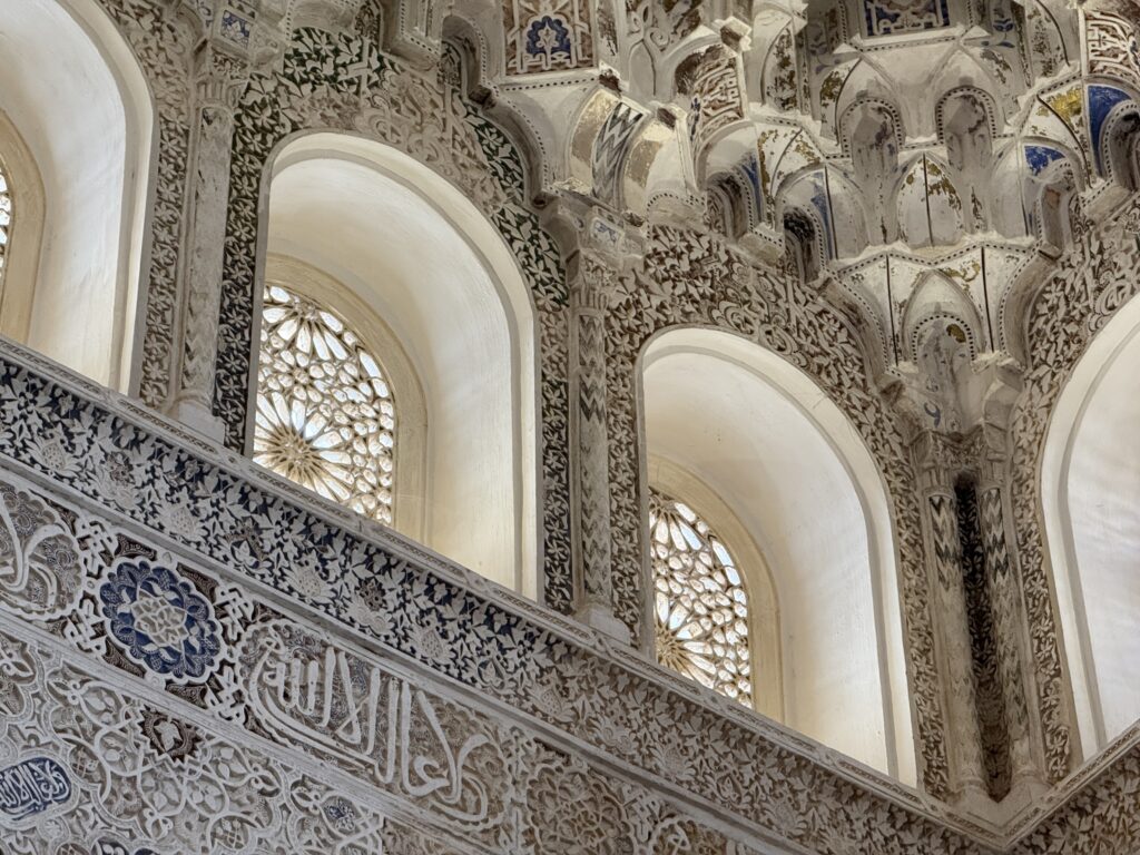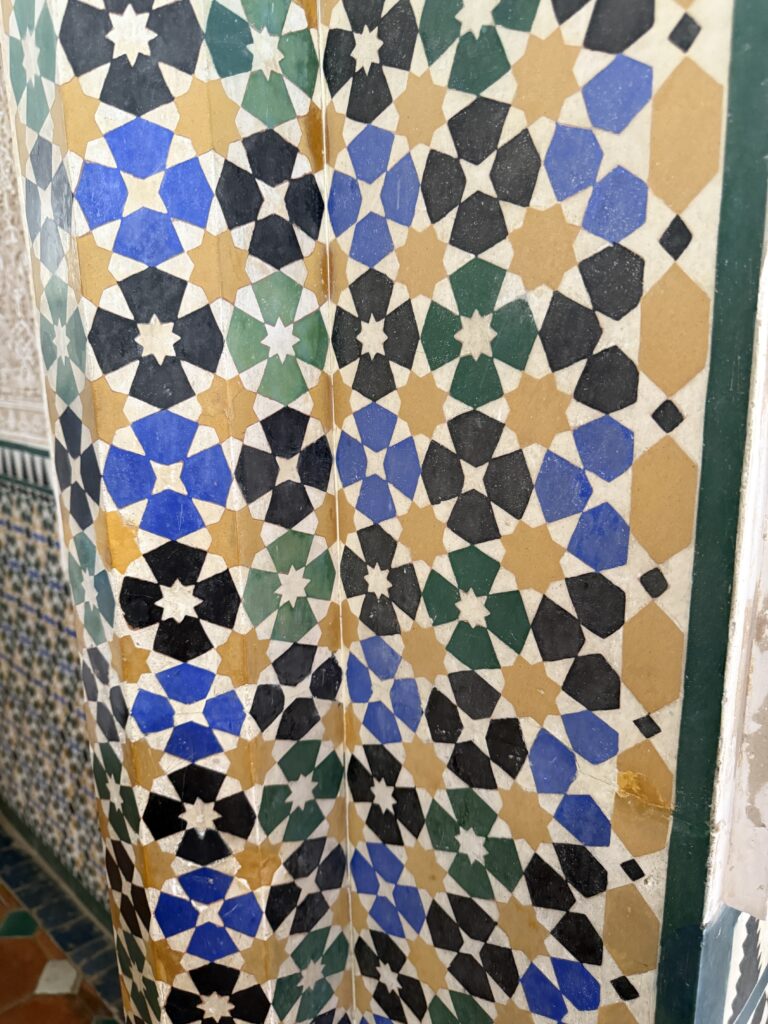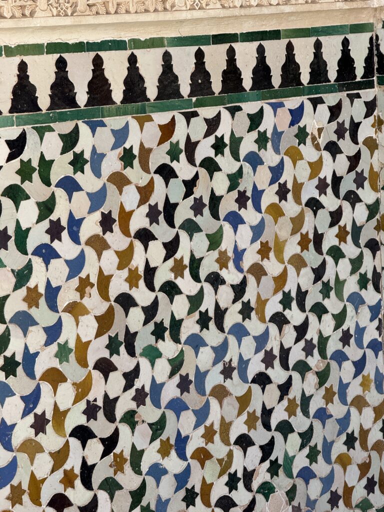 可以明顯感受到摩爾風格的特色,牆壁上的經文、連續的花紋裝飾、磁磚鑲嵌的無限延伸(照片右上/中左/中中/中右)