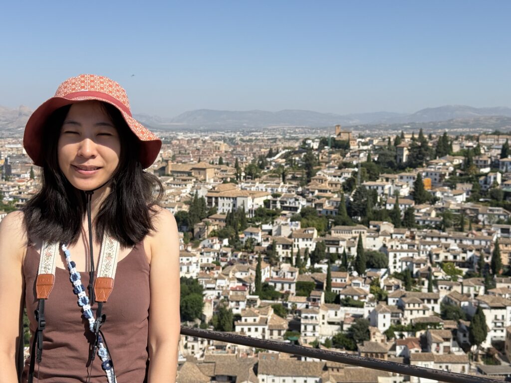 (照片下)在山上的阿爾罕布拉宮可以俯瞰整個格拉那達,看怡靜的臉就知道太陽有多大