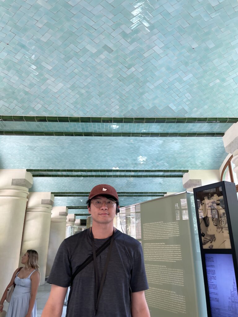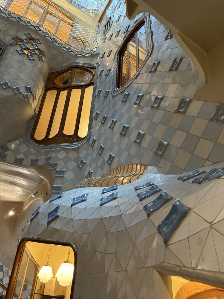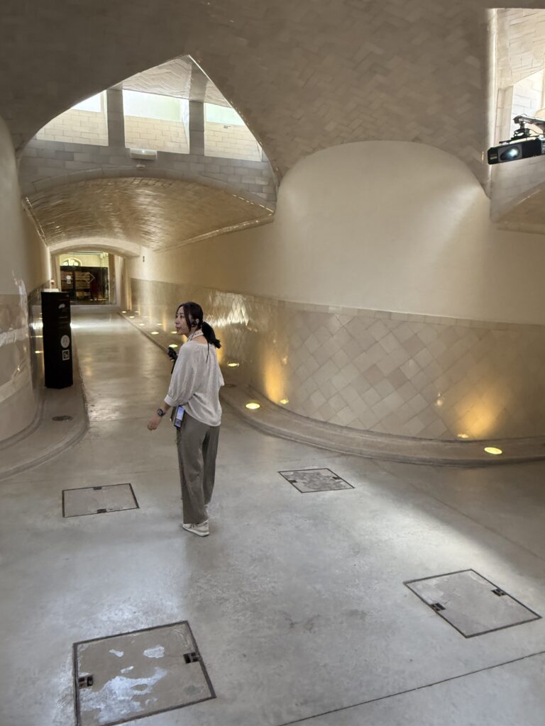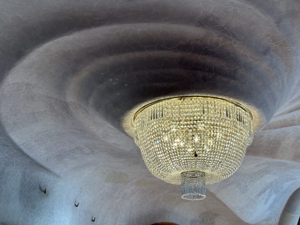 建築物天井也是有著流動的線條,而且還貼了像是義大利餃的磁磚,打破了我對磁磚的想像