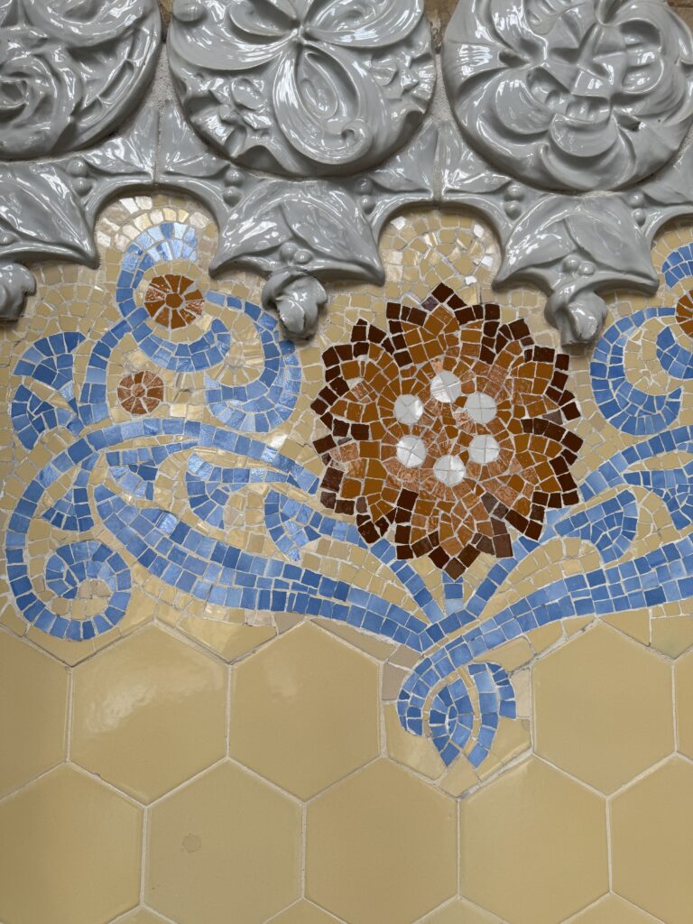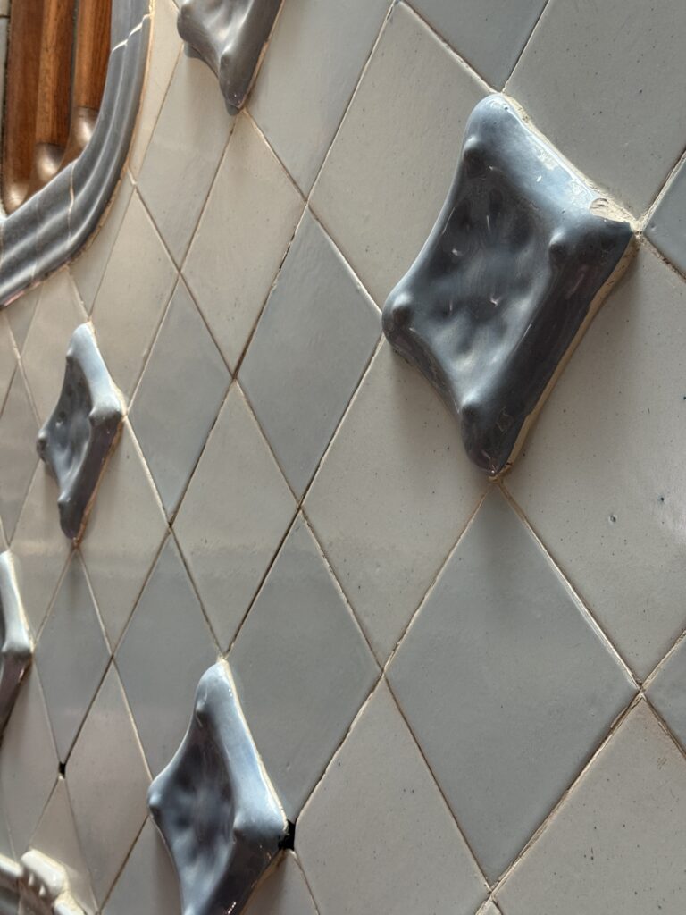 高第的風格很明顯,他喜歡流動圓潤的線條,木作、鐵件都充滿地流動的細節,但我沒有想像到磁磚也可以如此的有生命力