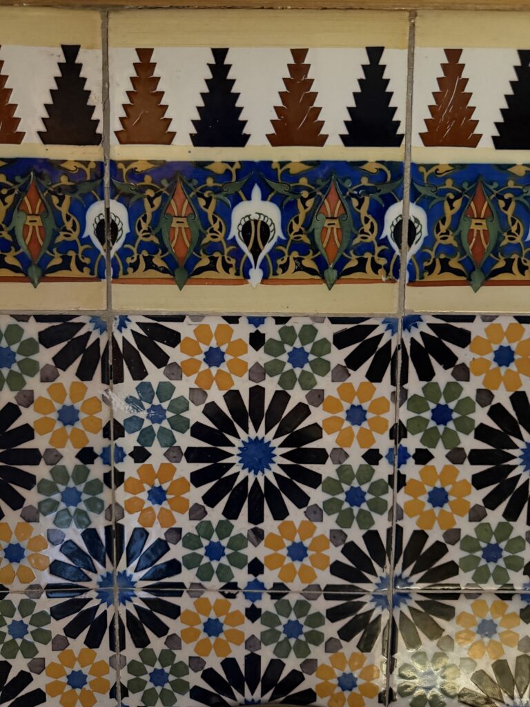 (照片右上)很特別的外牆裝飾,底層的石材與精緻的花磚形成強烈對比