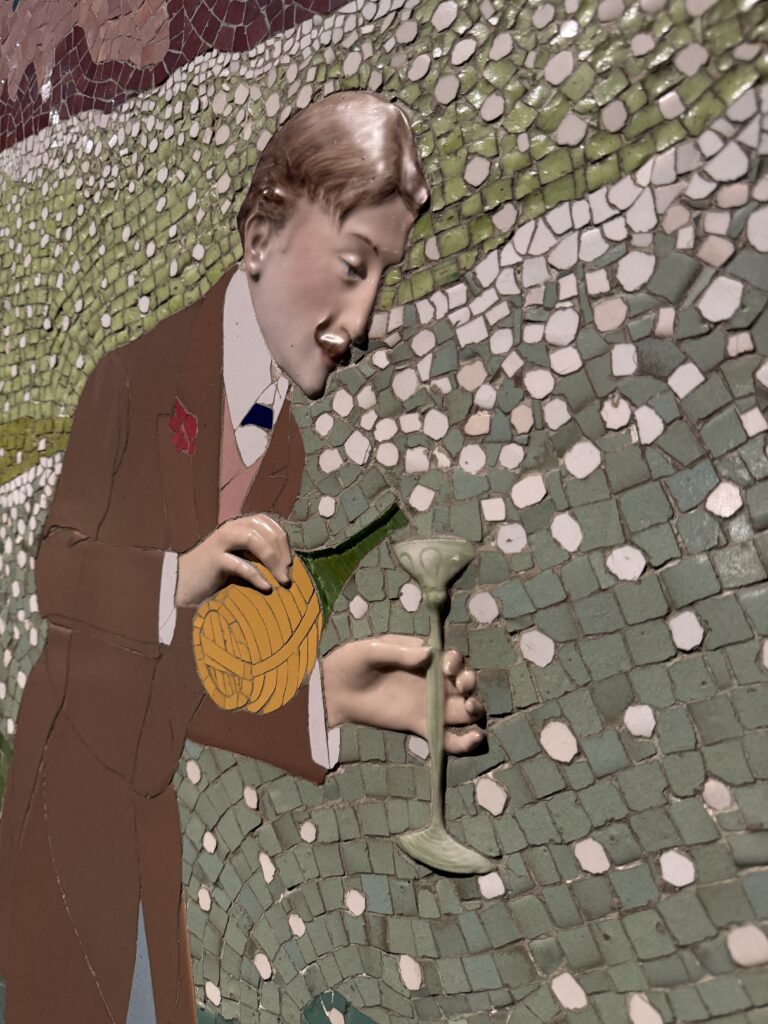 (照片左下/左中)奇特的馬賽克,臉跟手是凸出來的