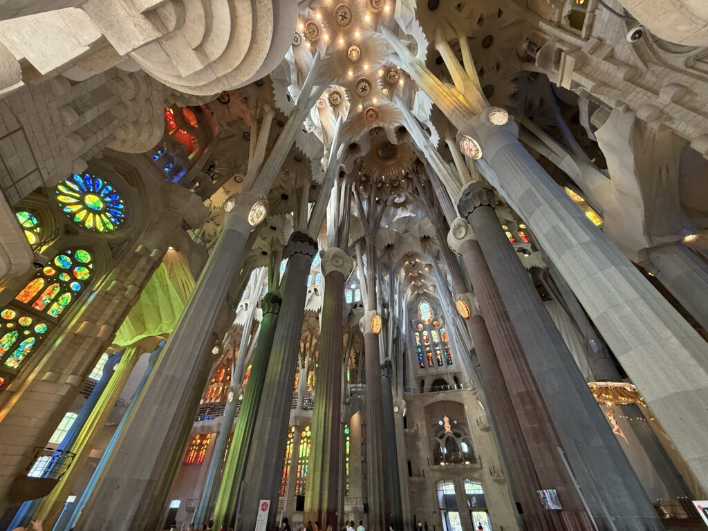 (照片上中)柱子好像樹木一樣的分支,整個教堂充滿各種顏色