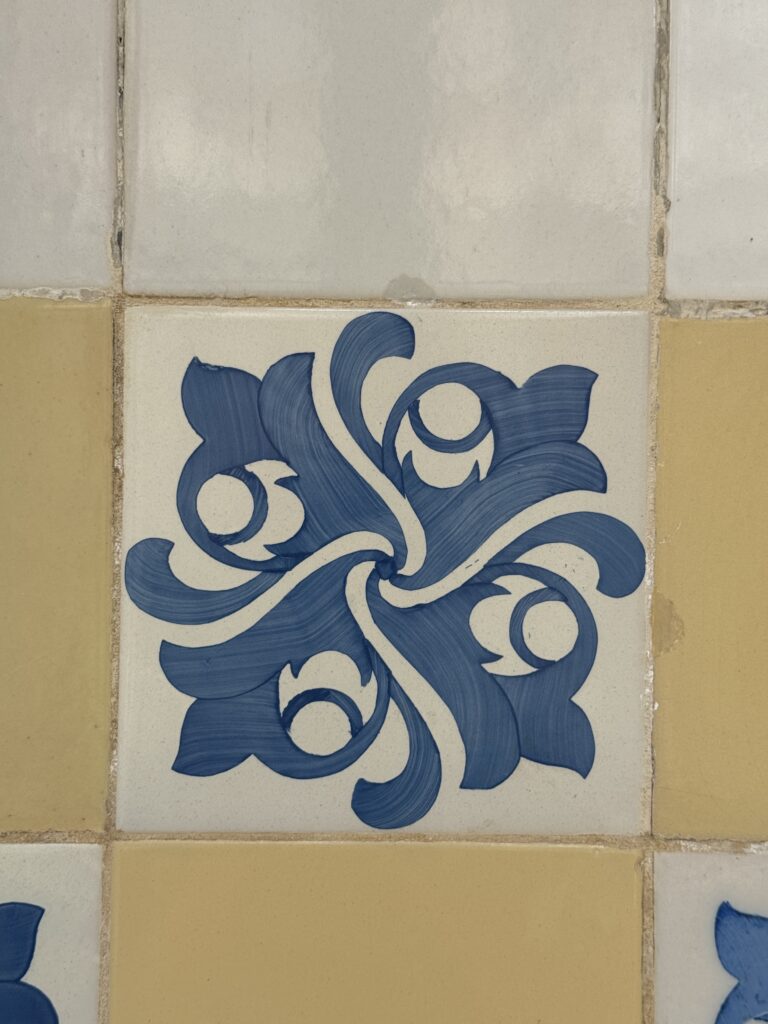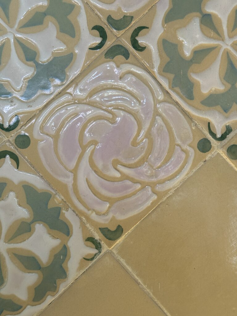 (照片上中)彩繪花磚,還看的到筆刷的痕跡