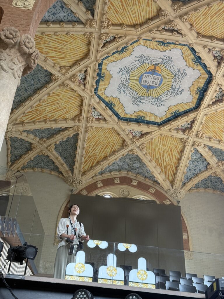 (照片中上)建築的尾端是一個超大的環形劇場,怡靜的背後是管風琴