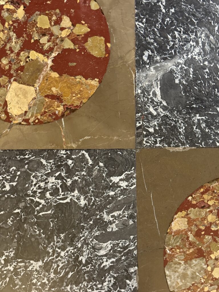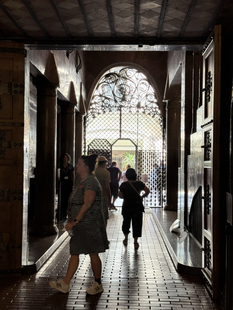 (照片左上)奎爾宮一樓往外看,這裡的地磚比較普通,因為一樓是讓馬車開進來讓主人下車的(然後馬要停在地下室)