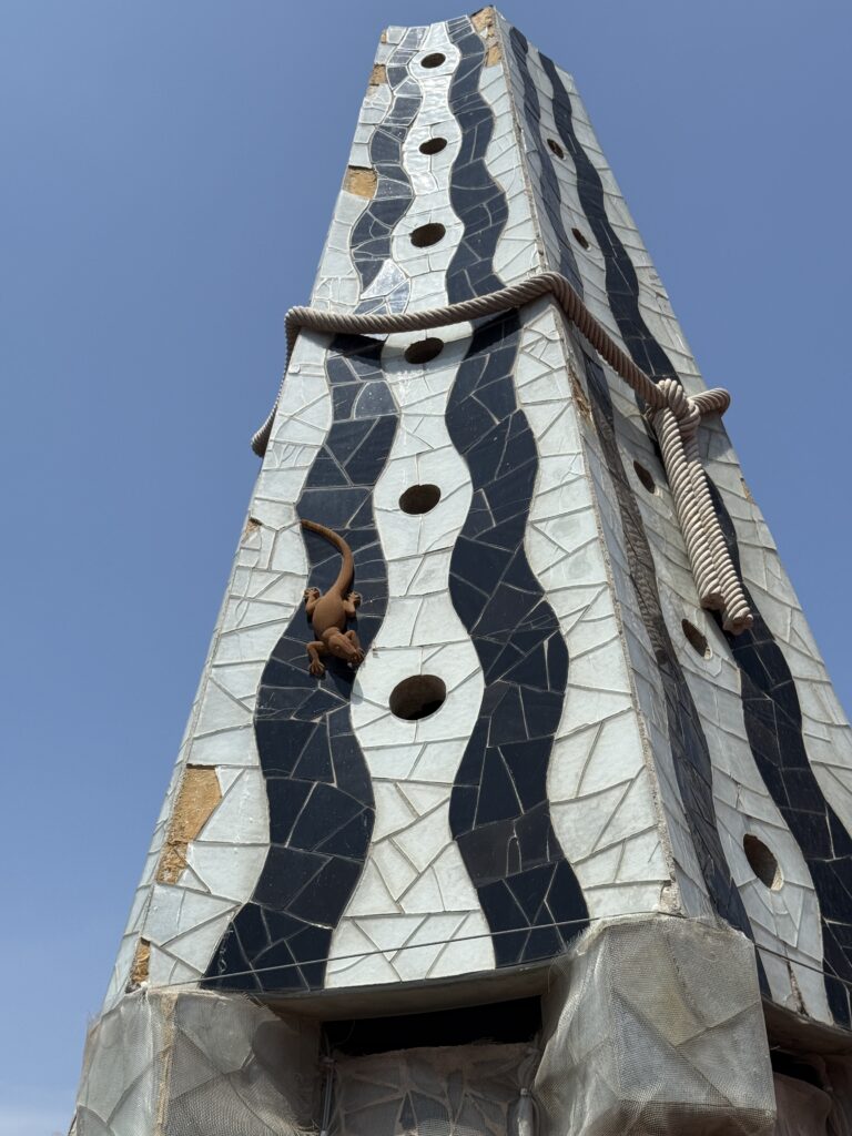 (照片右)廣場椅子的下方就是百柱聽,這裡原本預計當作市場,百柱聽外面有著名的馬賽克拼貼蜥蜴,不過圍滿了人,根本沒機會拍到照
