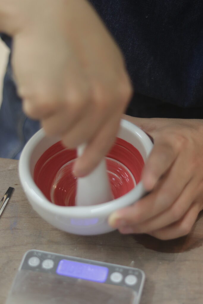 選定好基底後,第二步驟是加入色粉,調整顏色濃度