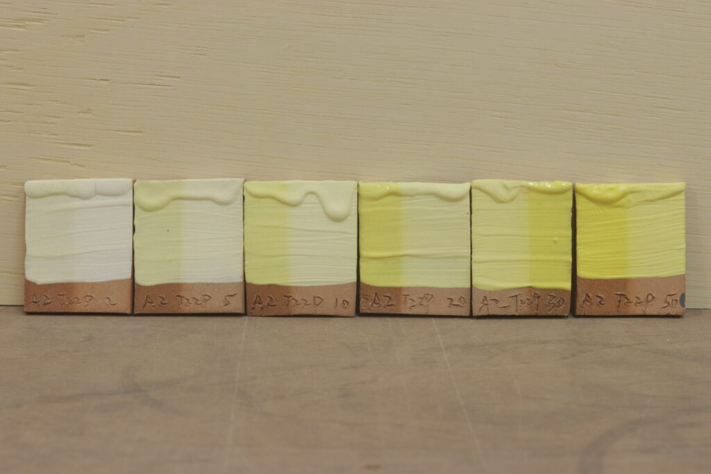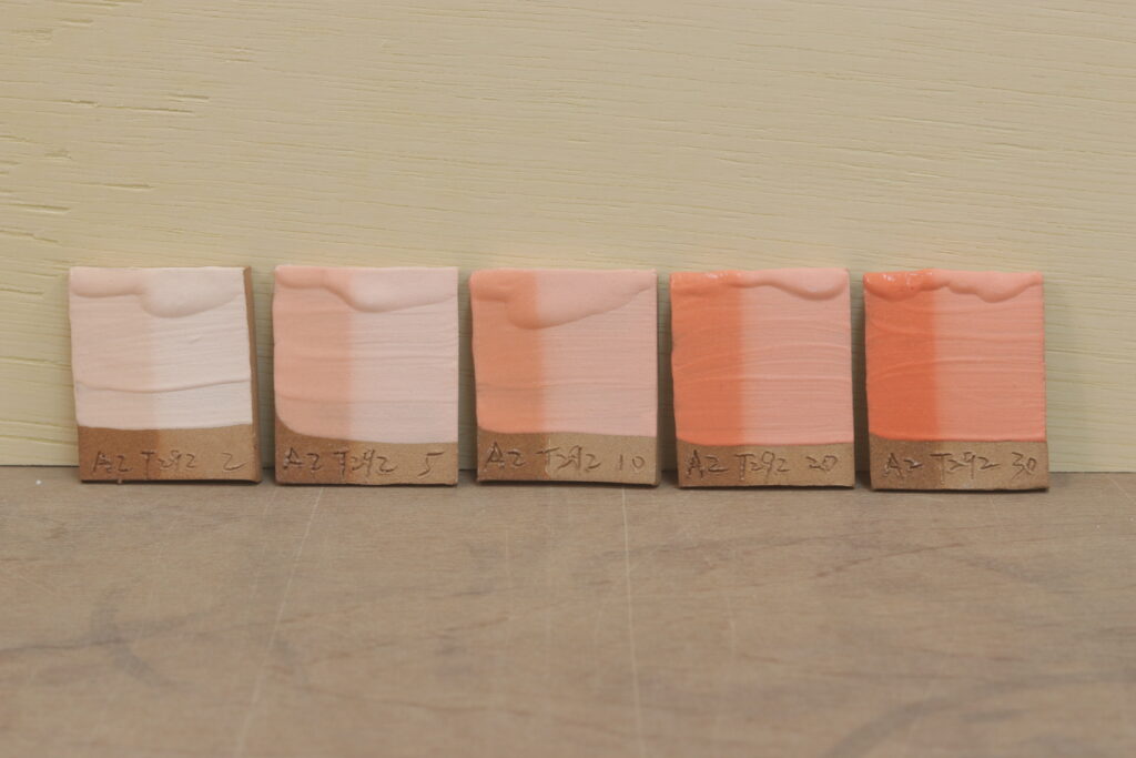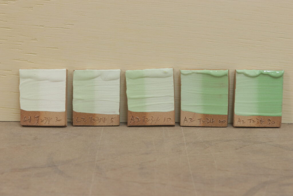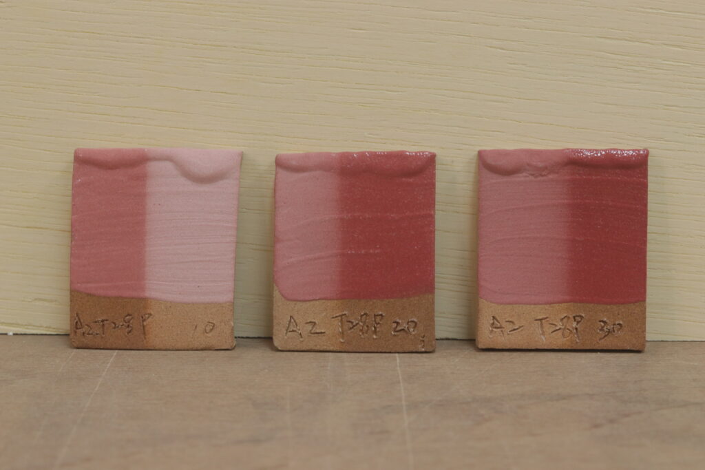 照片是依照不同濃度的色粉去測試燒出來的效果
